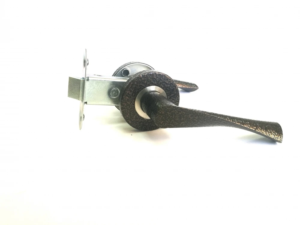 Защелка ЗЩ2.07 в комплекте с ручками. Ручки оснащены подпружиненным механизмом. Современный механизм обеспечивает плавную, но четкую работу ручек. Все крепежные элементы скрываются декоративной накладкой. Цвет: медь.
