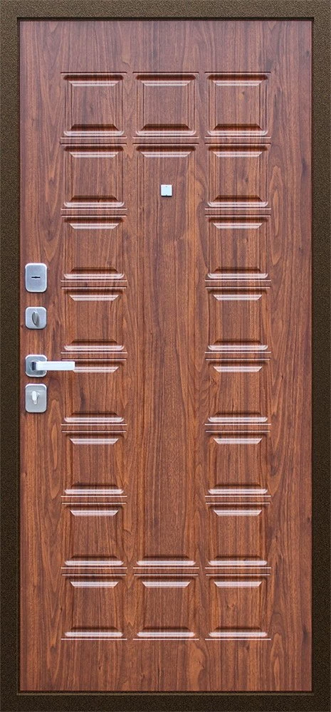 Надежная входная Дверь Спартак Орех темный премиум класса по цене 33 659 руб. Большая толщина стали защитит от проникновения в ваш дом, квартиру или коттедж. Используется очень качественная фурнитура: замки, цилиндры, ручки, защелки. Покрытие и отделка двери изготовлено под внимательным контролем производителя. Дверь имеет долгий срок службы и гарантию.