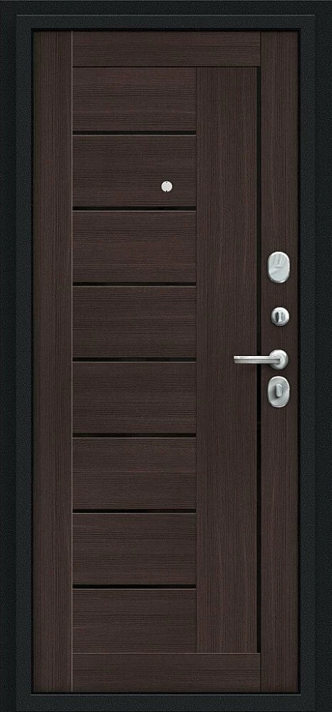 Надежная входная Дверь Браво Проф Букле черное/Wenge Veralinga премиум класса по цене 32 559 руб. Большая толщина стали защитит от проникновения в ваш дом, квартиру или коттедж. Используется очень качественная фурнитура: замки, цилиндры, ручки, защелки. Покрытие и отделка двери изготовлено под внимательным контролем производителя. Дверь имеет долгий срок службы и гарантию.